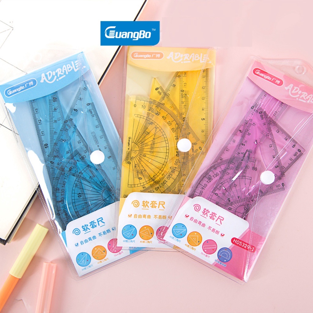 Bộ thước kẻ 4 chi tiết 20cm GuangBo H05329 1 gồm
